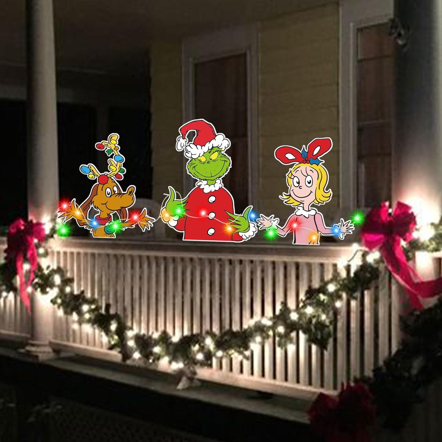 - Decoraciones navideñas de Grinchs con luces: recibirás 3 miradores de valla de Grinchs, incluye Grinch, Max y Cindy, y 1 rollo de tira de luces con 20 luces LED y una longitud de 9.8 pies. Las luces LED suaves y cálidas añaden diversión y sensación festiva, aportan un fuerte ambiente festivo cálido a tu hogar, perfecto para decoraciones de Whoville al aire libre o interior.
