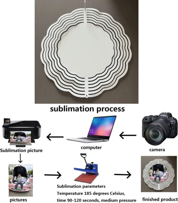 - 【Sublimation Blanks wind spinner】 sublimation blank wind spinner is a great piece of outdoor metal yard art or hanging décor which comes with a white base coat and a high gloss finish. Like all our products, this sublimation blank wind spinner is powder-coated for maximum rust resistance, making it ideal for use as an outdoor metal yard art.