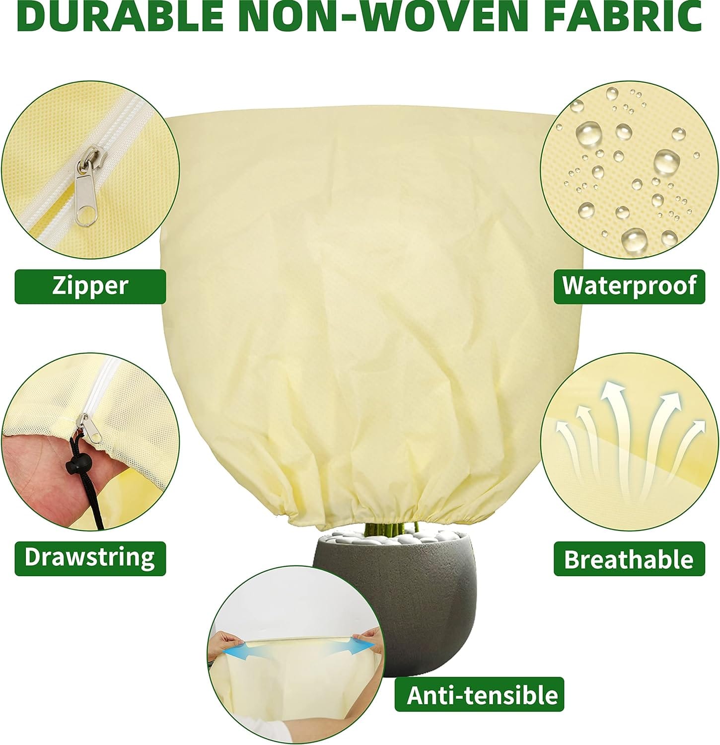 - COMPREHENSIVE PLANT PROTECTION – With its large size and durable fabric, our winter plant covers prevents intrusion from wildlife and pests, protecting plants from nibbling, trampling, and diseases. The drawstring and zipper design enables you to adjust the plant’s growing environment, providing comprehensive plant protection.