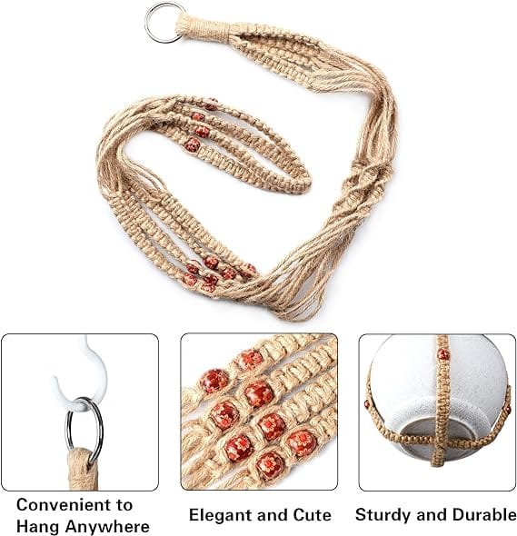 - PREMIUM MATERIAL – Made of hand knotted natural jute rope, green and pollution-free, to hold up the beautiful plant pots symbolizing vitality, make the house one step closer to nature.