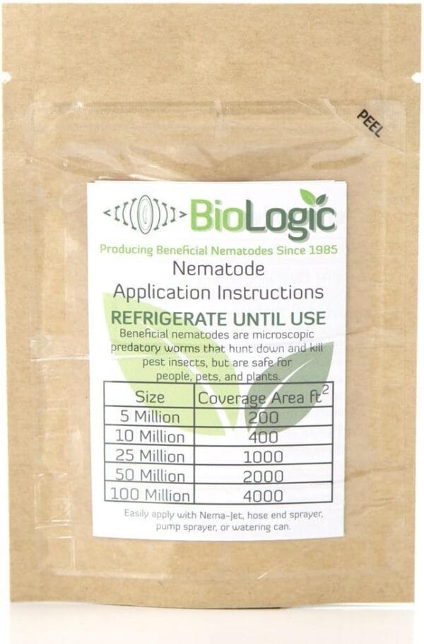 Scanmask Spray beneficial nematodes contain the species Steinernema feltiae, a native naturally occurring insect parasitic nematode. The nematodes in Scanmask seek out pest insects, enter their bodies and release a symbiotic bacteria that kills the insect. BioLogic’s nematodes have not been modified in any way and are supplied in a moist inert carrier. Treating with Scanmask is easy! Apply with either a hose end sprayer, watering can or BioLogic’s Nema-jet sprayer. Scanmask controls a wide variety of insect pests, but is safe for people, pets, and plants. Scanmask is also compatible with other beneficials like earthworms, ladybugs, and praying mantids. Scanmask controls over 230 pests including: armyworms, black vine weevils, root maggots, cutworms, fire ants, fleas, fungus gnats, Japanese beetle larvae, tree borers, sod webworms, white grubs, and wireworms. This product ships direct from the producer, BioLogic. Nematodes are packed in an insulated box with ice. Shipments go out Monday-Wednesday to avoid sitting in transit over the weekend and to ensure healthy nematodes. Refrigerate nematodes upon arrival and until use. Can be refrigerated for up to 2 months from ship date, but should be used within a week of opening.
