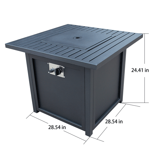 This 28″ slat top gas fire pit table has one stainless steel burner that equal 50,000BTU.