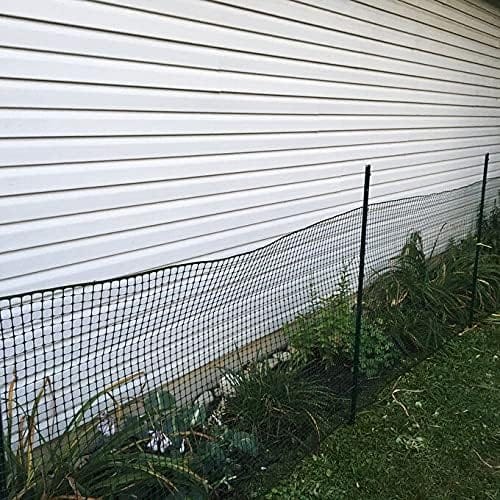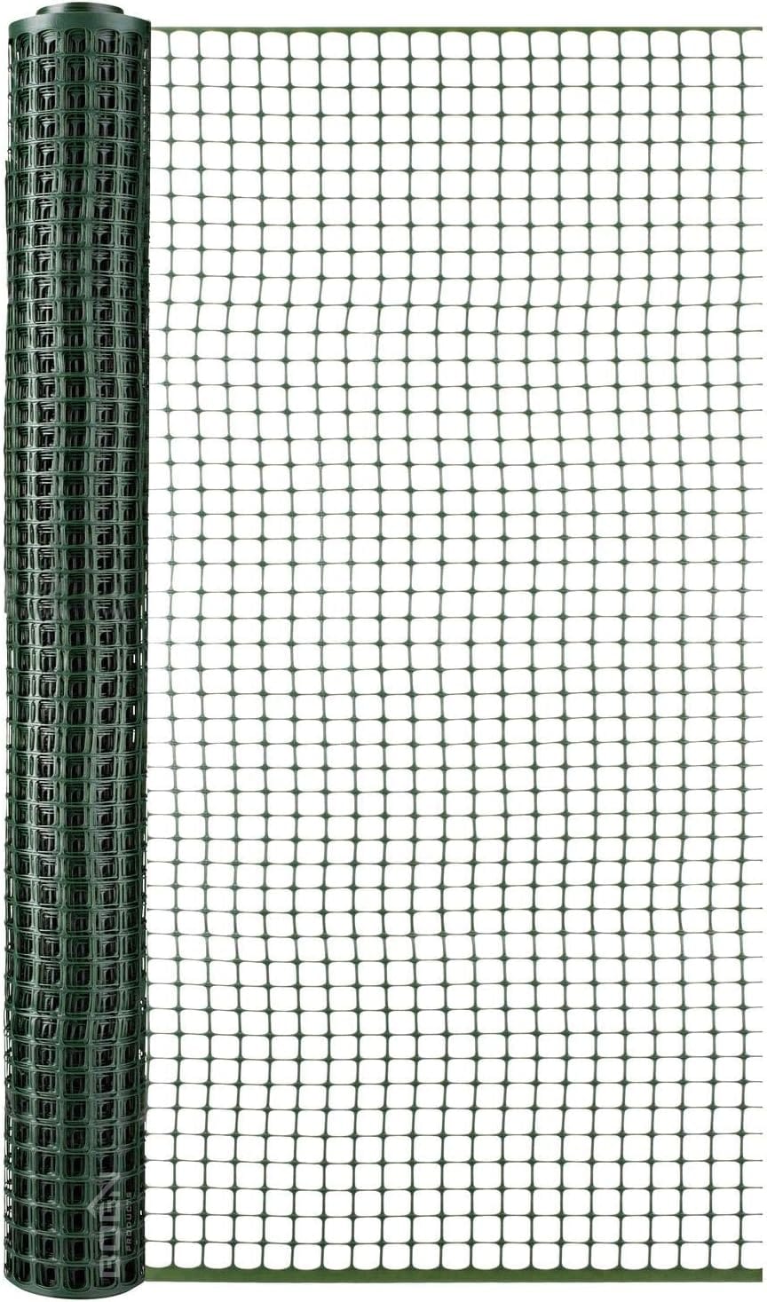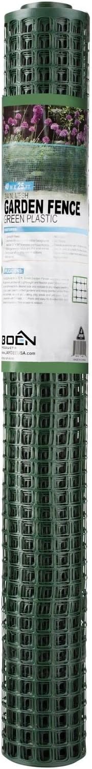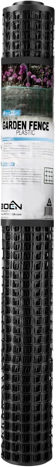 The Boen 40 pulgadas. x 25 pies. Green Garden Fence tiene muchos usos en el jardín y más allá. Valla de malla de plástico HDPE ligera y flexible, se puede recortar al tamaño deseado y moldear a cualquier forma necesaria para su área. Se utiliza para proteger jardines y áreas recién plantadas de animales pequeños, así como para crear áreas de juego y corrales para mascotas. Fácil de montar con postes en T o postes en U y fácil de desmontar y transportar o guardar de temporada a temporada