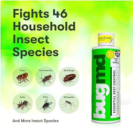 • Eliminate Home Invading Pests: BUGMD is the effective way to target hundreds of indoor and outdoor pests including ants, fleas, mosquitoes, roaches, mites, moths, spiders and tons more This essential oil powered spray is the perfect solution to keep your home, yard and other spaces pest free without ever sacrificing your family’s health and safety (when used as directed).