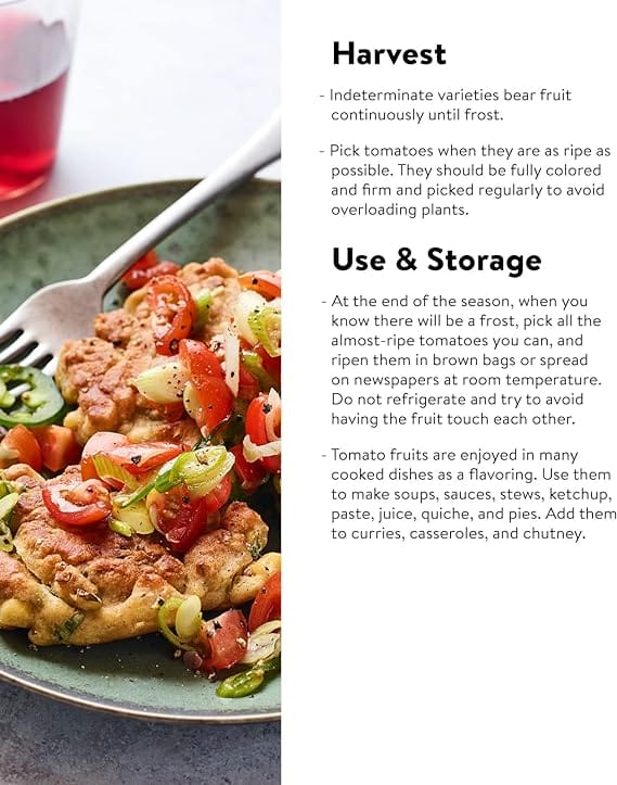 - EASY GROWING PLANTS: Seed pack contains 30 non-gmo hybrid tomato seeds for planting. The indeterminate tomato plants are prolific, producing tangy-sweet tomatoes right up until frost. Expect a first harvest about 65 days after transplanting into your outdoor garden. Use a tomato cage or support for the best harvest!