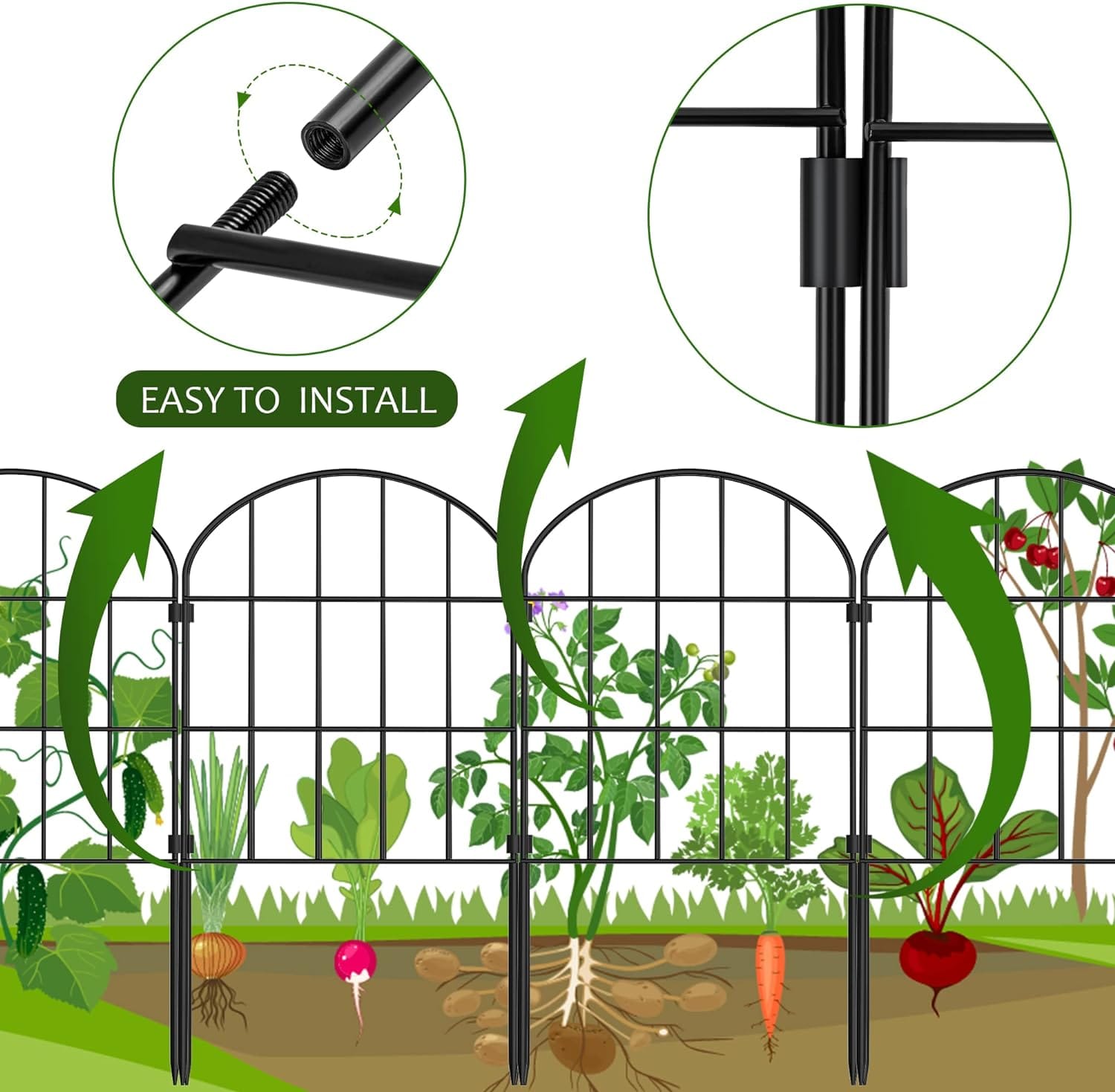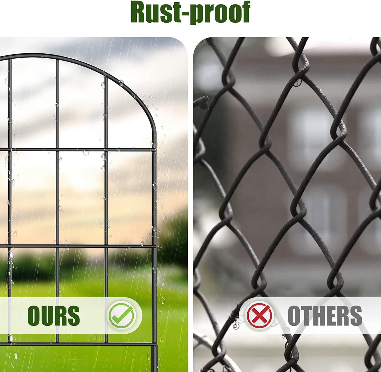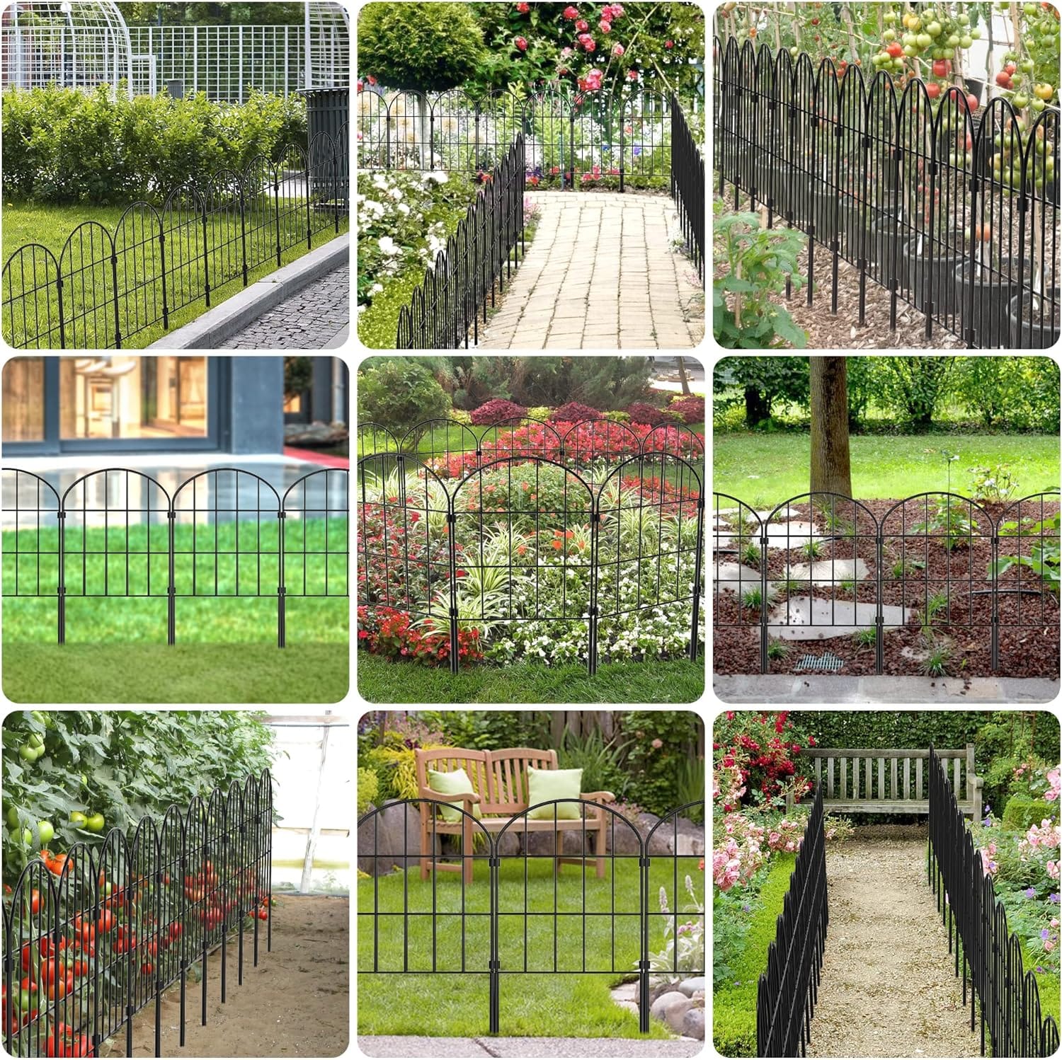 - 𝐃𝐞𝐜𝐨𝐫𝐚𝐭𝐢𝐯𝐞 𝐚𝐧𝐝 𝐑𝐮𝐬𝐭𝐩𝐫𝐨𝐨𝐟: The classic arched design adds a modern touch to your garden, backyard, front yard, patio or yard. Black rustproof coated garden wire is welded with thick wire, strong and durable.