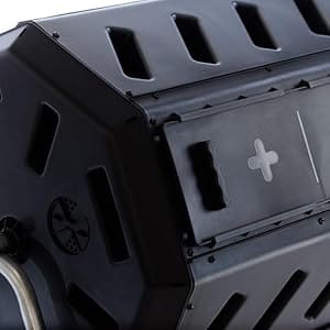 - EASY TO USE – Fantastic for beginners! The large openings and removable door make it easy to add scraps/clippings and remove finished compost. Deep fins on the body provide great ergonomic handholds.