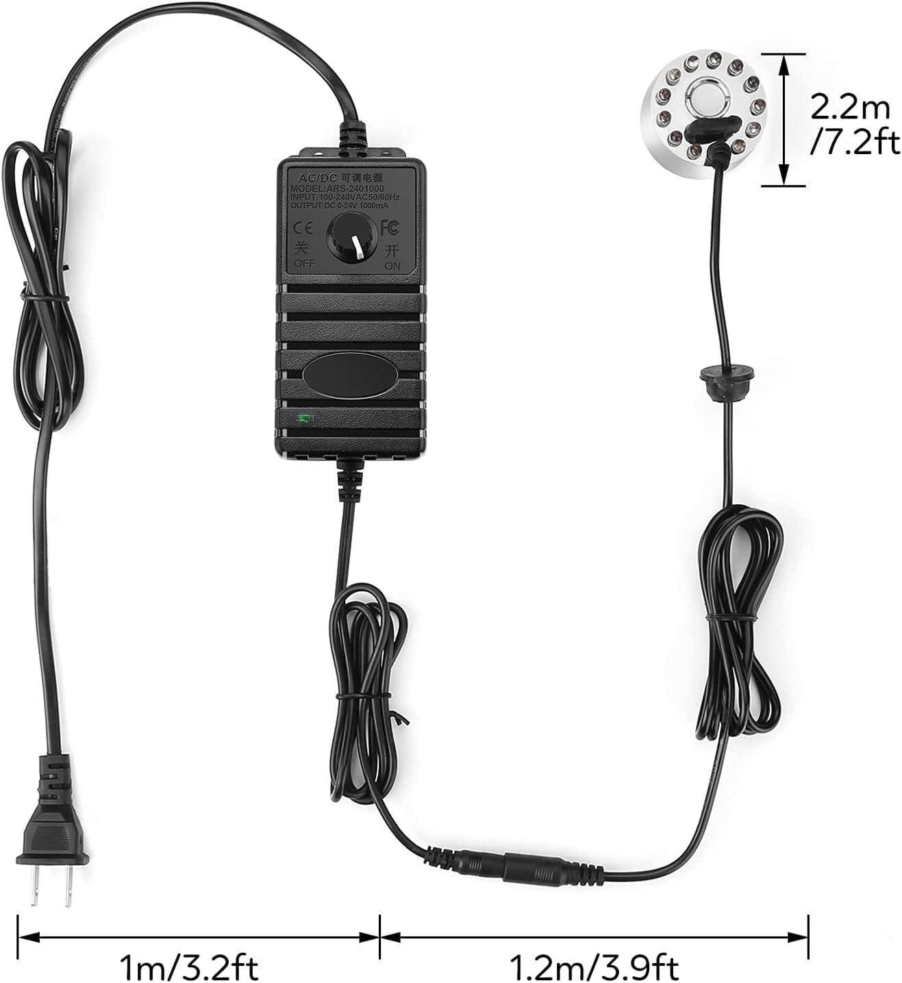 - 【Mist Maker Size】-1.8inch diameter, 1.8inch tall Cable Length: (82 inch) (90cm attach to adapter, 120cm attach to mist maker) , 3.5mm in diameter.