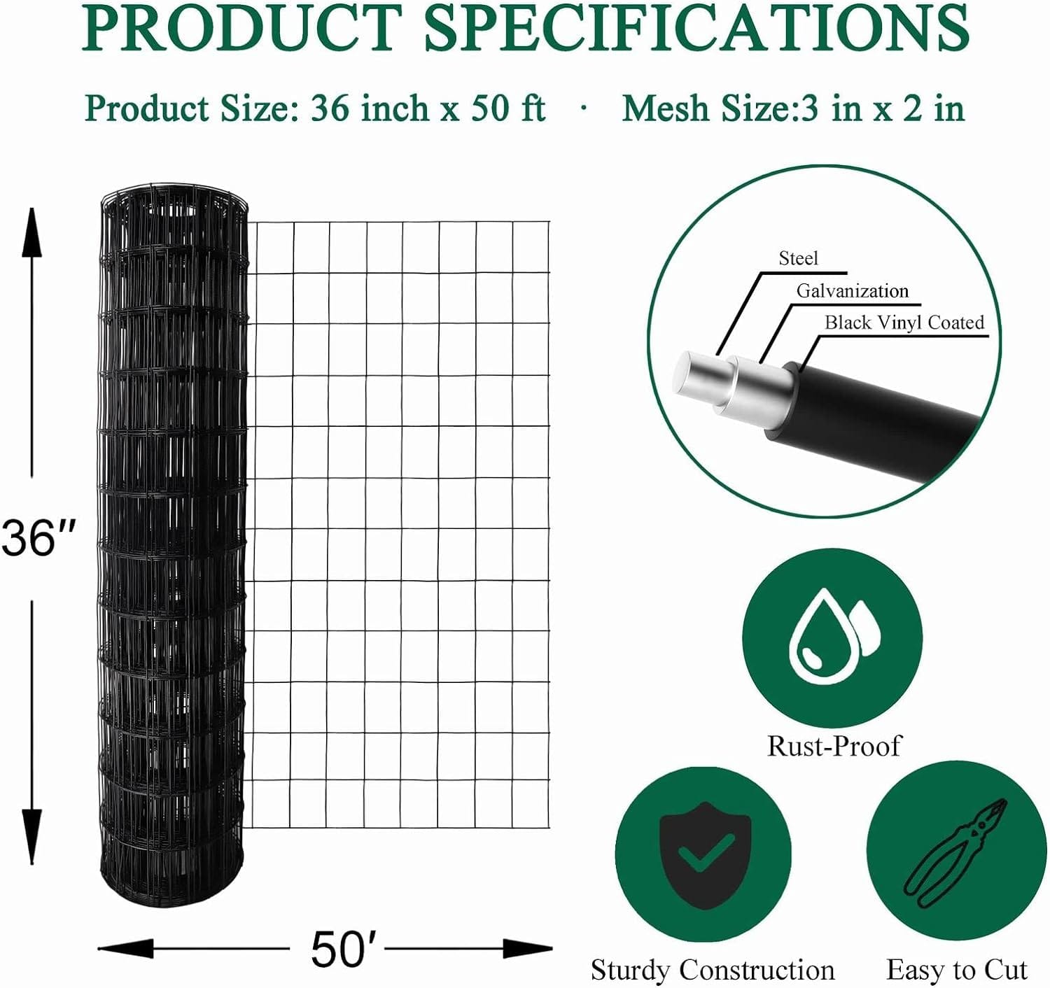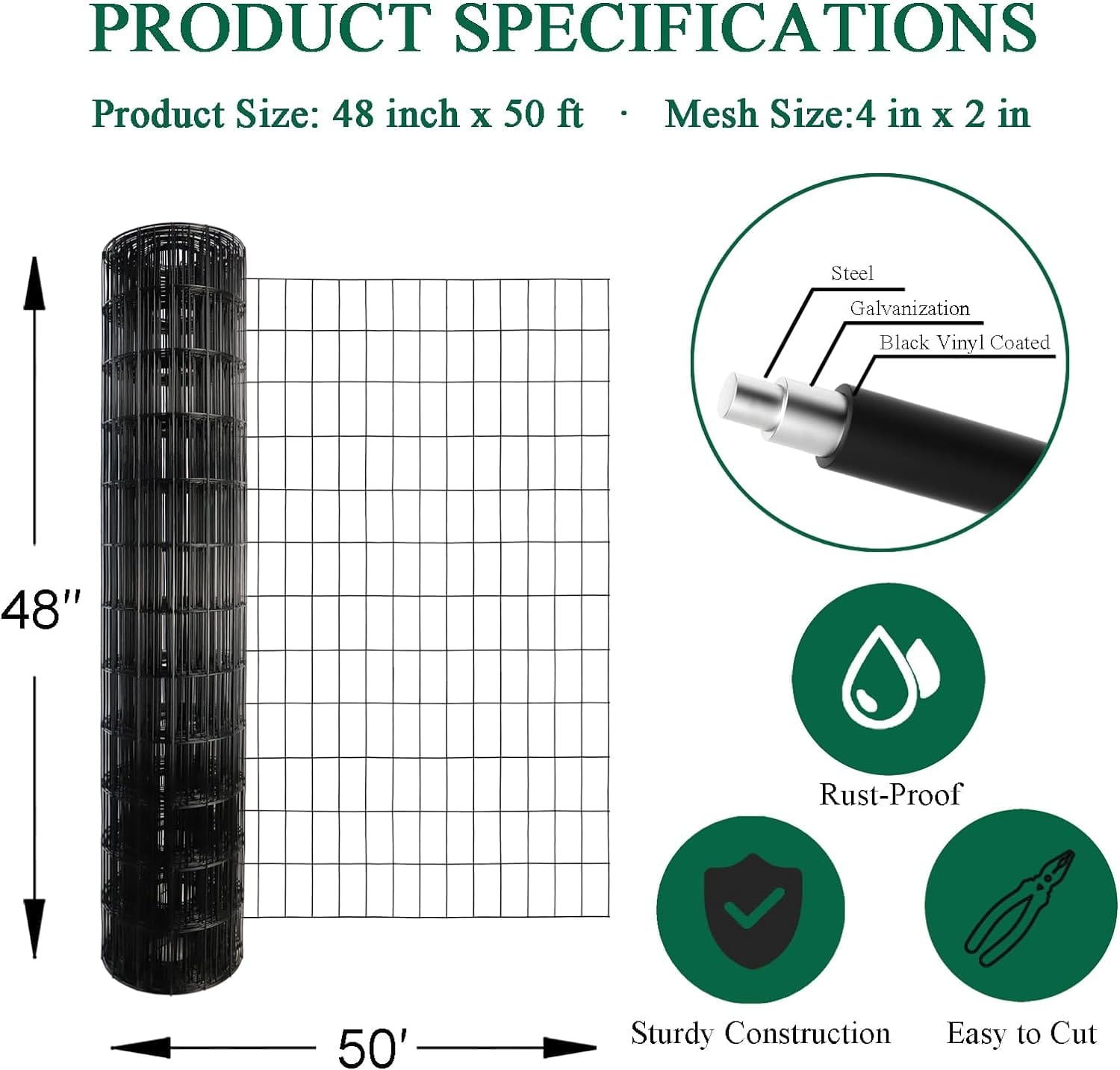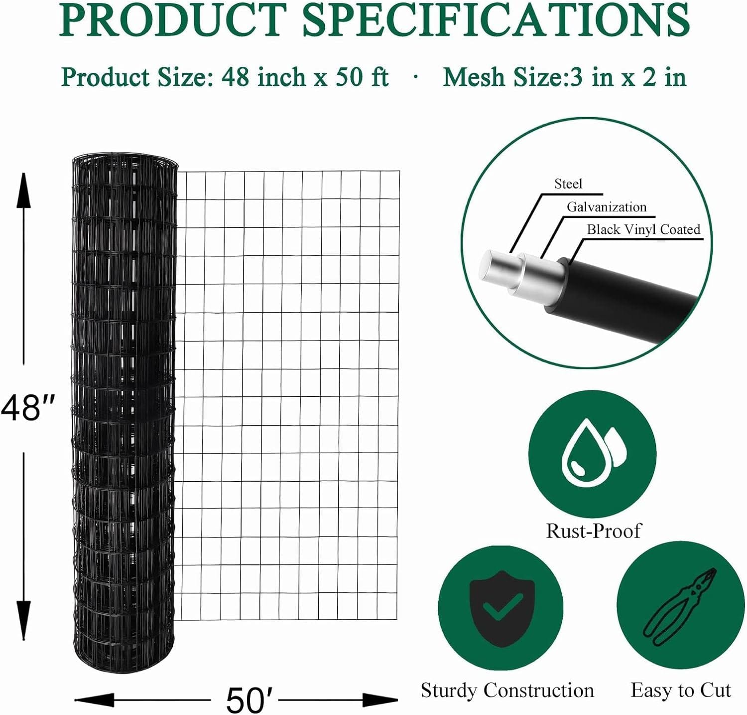 - FOREHOGAR La cerca de jardín de alambre soldado está hecha de alambre galvanizado resistente y luego recubierto con vinilo negro. A prueba de herrumbre y con larga vida útil.