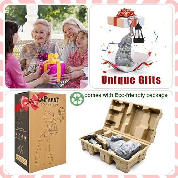 - 【Weather-Resistant Design】: Whether it’s rain or shine, this waterproof elephant statue and solar lantern can withstand any weather or environment, making it the perfect addition to your outdoor decor for pathways, flowerbeds, and more.