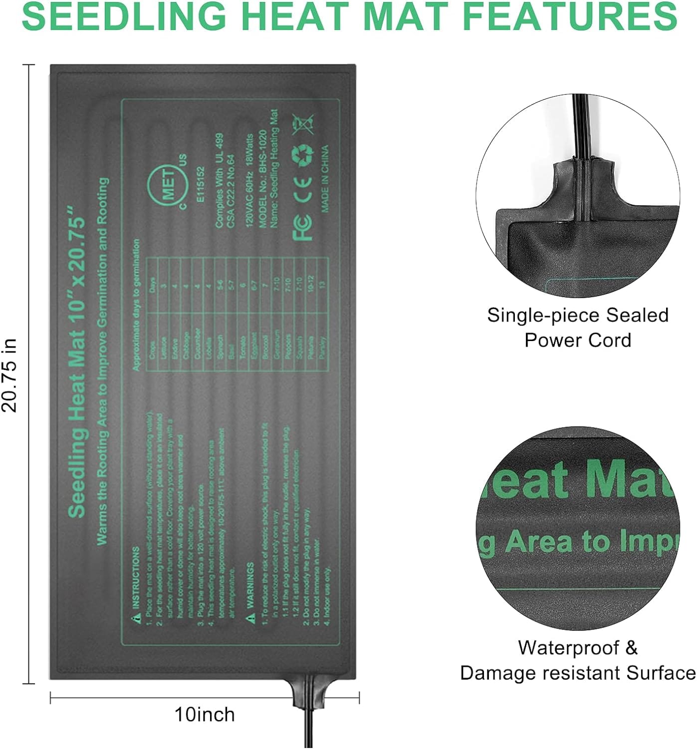 • ⭐【ENERGY EFFICIENT DESIGN AND STORAGE】: The seedling heat mat runs at only 18 Watts to help you save on electricity.When not in use,you just need to half fold up the heating mat in a storage box,very convenient to store