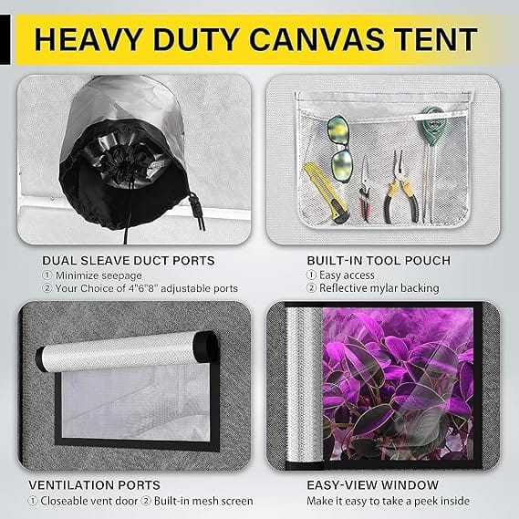 • Durable Material: iPower grow tent is made of high quality oxford fabric. It is tear proof, water-resistant, wear-resistant to block all light from escaping and lined with 98% reflective mylar to boost the output efficiency of any grow tent setup.