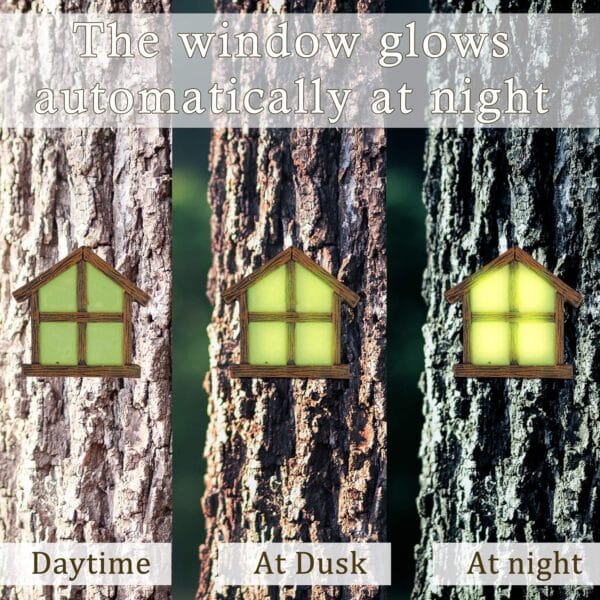 - [Premium Quality]: The Miniature Fairy Garden Door Windows are made of high grade resin. The two windows are coated with phosphorescence, which absorbs sunlight during the day and glows faintly light automatically at night.