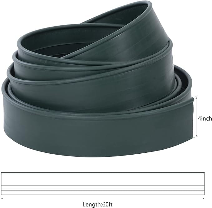 - Durable & Sturdy: Our commercial landscape edging kit is made of New PE plastic and PP materials with good ductility,60ft long,4inch tall,It can be installed in a straight line or molded to form curves as you will, and it can also withstand the invasion of frost heaves and heavy rain to keep your design in place.
