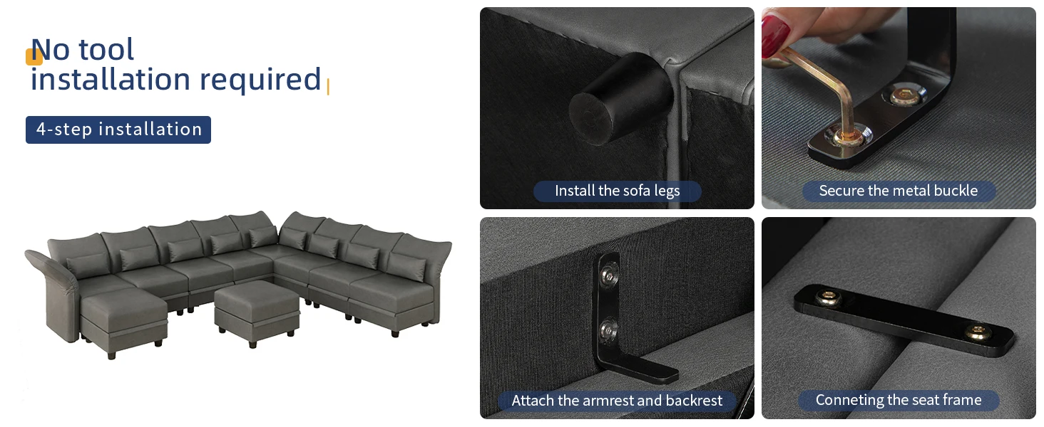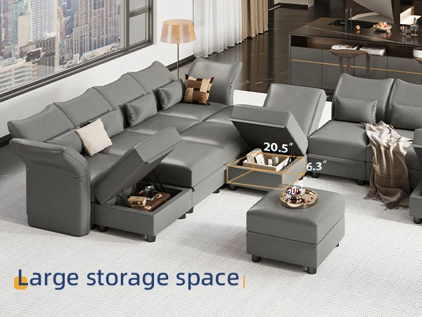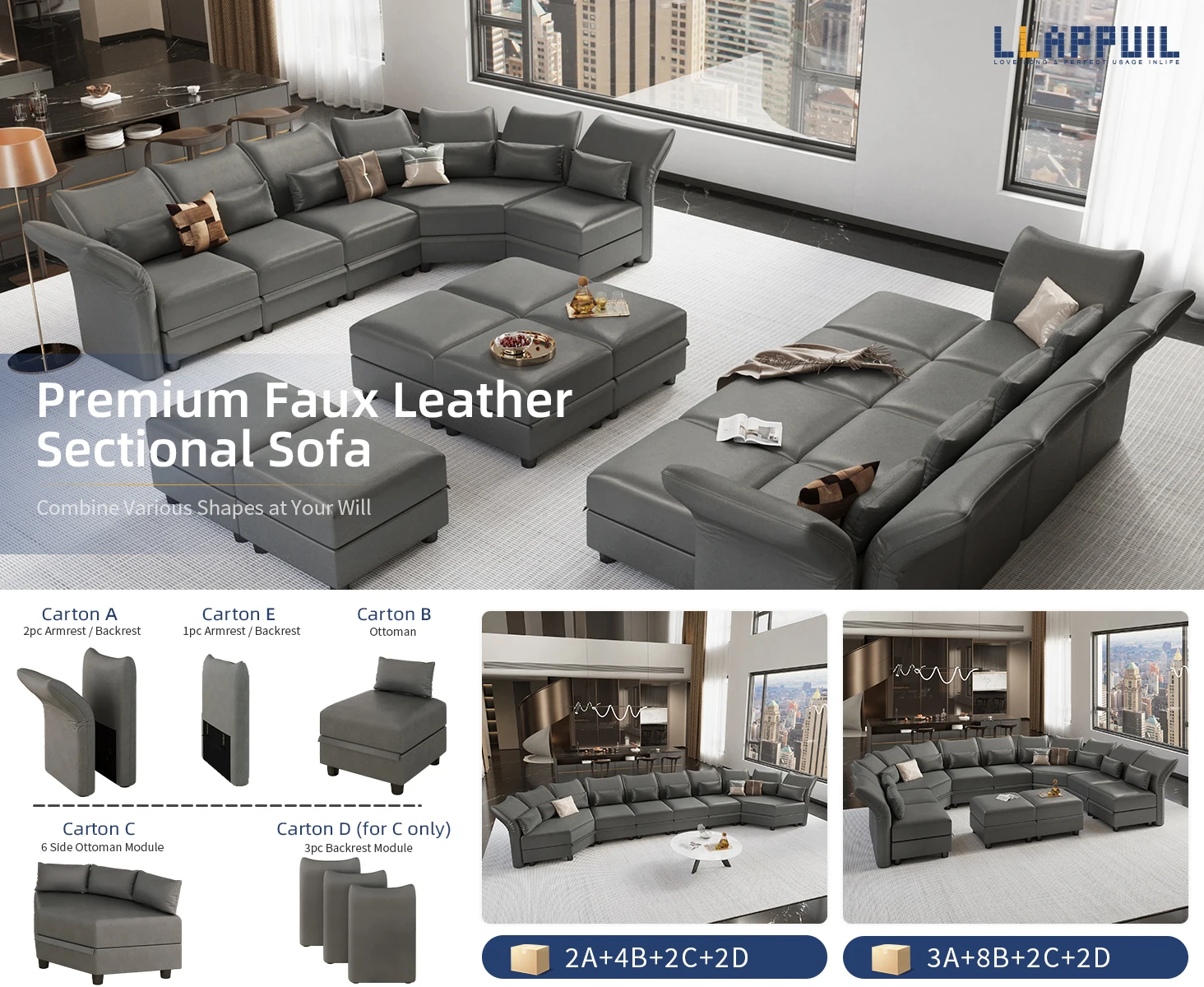 Large Modular Sectional 10 Seat U Shaped Sofa with Storage, Faux Leather Waterproof Sectional Couch for Living Room, Grey