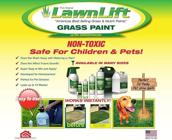 LawnLift 64 ounce Grass Paint factory 2nd with cosmetic blemishes on bottle, seal and label. May include dried paint or other unsightly blemishes on exterior of bottle.