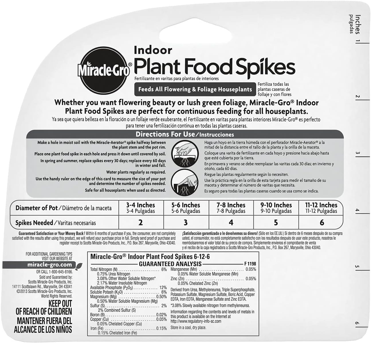 Miracle-Gro Indoor Plant Food Spikes, Includes 48 Spikes – Continuous Feeding for all Flowering and Foliage Houseplants – NPK 6-12-6, Pack of 1