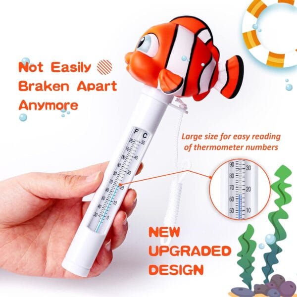 MKLZ Pool Thermometer Floating Easy Read, Water Temperature Thermometers with String for Outdoor & Indoor Swimming Pools, Hot Tub, Spa – Clown Fish