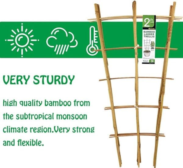 - QUALITY – Our premium bamboo trellis are all handmade, using the high quality bamboo from the subtropical monsoon climate region. Very strong and flexible, durable for several seasons, so our potted plant support won’t be easily blown down by the wind, climbing trellis can help taking some weight of your plants like tomatoes or peppers. Bamboo is eco-friendly materials. All bamboo canes are hand selected and hand treated.