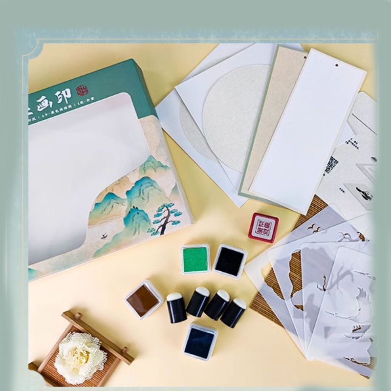 产品抖店链接:58:/ 05/07 z@T.lC 【原创国风DIY水墨印画套装 镂空板遮蔽板印泥印章国画工具礼盒】长按复制此条消息,打开抖音搜索,查看商品详情##kGLr7htdSP8##[抖音口令]