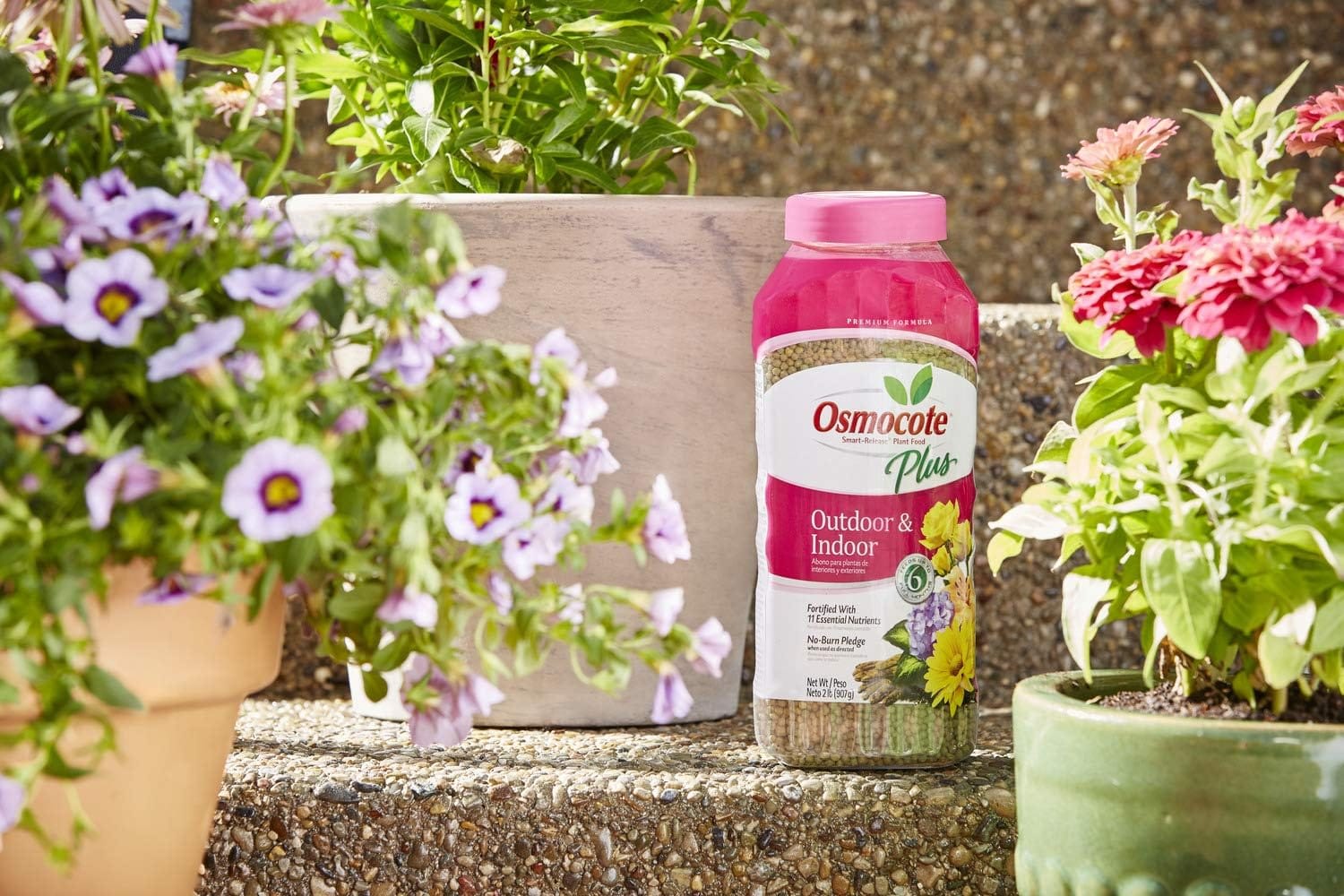 Feed indoor and outdoor potted plants for up to a full 6 months with Osmocote Smart-Release Plant Food Plus Outdoor & Indoor. This is our best formula, and it is fortified with 11 essential nutrients. It works with virtually all plant varieties, in all growing conditions. Plus, we offer our no-burn pledge when you use Osmocote as directed.