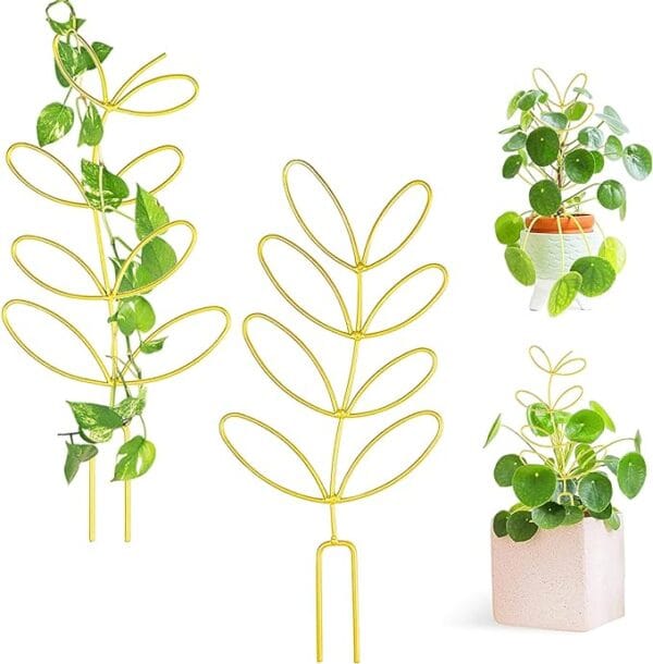 - [SIMPLE USED] – These mini trellis for potted plants are easy to install and without additional tools. Our plant supports a sharp stick that is easier to insert and fix in the soil for better balance and stability of your flower plants. The leaf shape design plant trellis will bring a surprise to your family or friends who are gardeners.
