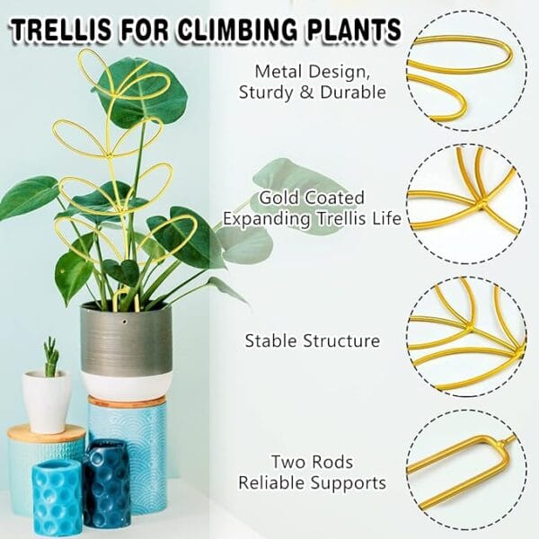 - [SUPPORT YOUR CLIMBING PLANTS] – The wire trellis can be used for potted plant, climbing plant, indoor plant and garden plant, it’s also actually supports the growth of your mini rose, african violets, miniature roses, hoyas, Ivy, Philodendrons, pothos, monstera or any other trailing or vining plant.