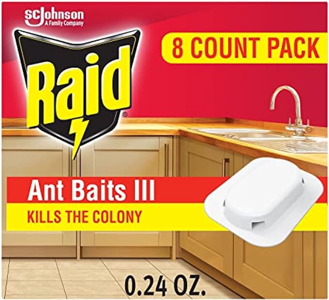 This item Raid Ant Killer Baits, Child Resistant Bug Killer for Indoor Home Use, 0.24 Oz, 8 CountHot Shot Ant Bait, 1 Pack, 4 countRaid Ant Gel, Kills Ants You Don’t See, Continues Killing for up to 1 Month, Odorless Bug Control, 1.06 ozTERRO T1804-6 Outdoor Ready-to-Use Liquid Ant Bait Killer and Trap – Kills Common Household Ants – 4 Bait StationsPIC Plastic Ant Killer Bait Stations, Effective Ant Control Traps, 4 Count…Add to Cart Add to Cart Add to Cart Add to Cart Add to Cart Customer Rating 4.1 out of 5 stars (14771) 4.2 out of 5 stars (4631) 4.3 out of 5 stars (1439) 4.4 out of 5 stars (2101) 4.1 out of 5 stars (77) Price $5.99$5.99 $2.97$2.97 $6.67$6.67 $9.79$9.79 $3.90$3.90 Shipping FREE Shipping on orders over $35.00 shipped by Amazon or get Fast, Free Shipping with Amazon Prime FREE Shipping on orders over $35.00 shipped by Amazon or get Fast, Free Shipping with Amazon Prime FREE Shipping on orders over $35.00 shipped by Amazon or get Fast, Free Shipping with Amazon Prime FREE Shipping on orders over $35.00 shipped by Amazon or get Fast, Free Shipping with Amazon Prime FREE Shipping on orders over $35.00 shipped by Amazon or get Fast, Free Shipping with Amazon Prime Sold By Amazon.com Amazon.com JT Supply Company Amazon.com Black Seed Trading, LLC Product Description