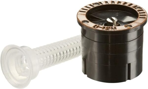 Rain Bird 12DSH Dual Spray 180° Half Circle Pattern Matched Precipitation Rate Nozzle, Adjustable 9′ to 12′ Spray Distance, 23° Trajectory. This specialty nozzle features two spray orifices for improved close-in watering and more uniform water distribution. Unique patented undercut design cuts watering times, uses 30% less water and reduces water waste in windy conditions. Areas close to the head receive even coverage minimizing dry brown spots. Non-corrosive plastic and stainless-steel construction for long life. stainless-steel adjustment screw adjusts flow rate from 1.8 to 2.6 gallons per minute and spray distance from 9′ to 12′. “Captured” screw slot prevents screwdriver slippage during adjustment. Nozzle sprays a 180° half circle pattern at a 23° trajectory and fits all Rain Bird sprinklers and shrub adapters. Fine mesh filter screen maintains precise radius adjustment and protects bottom orifice from debris. Trusted for decades, Rain Bird MPR Nozzles feature Matched Precipitation Rate water distribution technology. Nozzles with varying arcs and radii can be mixed on the same zone regardless of spray adjustment and still maintain even water distribution rates. A wide selection of MPR nozzles is available so the distribution of water can be tailored to meet the unique and diverse needs of your landscape. MPR nozzles are designed to provide uniform coverage, ensuring that your lawn is green throughout, with no dry or brown spots. Other Dual Spray MPR nozzles available (sold separately) are: 360° full (12DSF) and 90° quarter (12DSQ) patterns. Rain Bird “The Intelligent Use of Water”