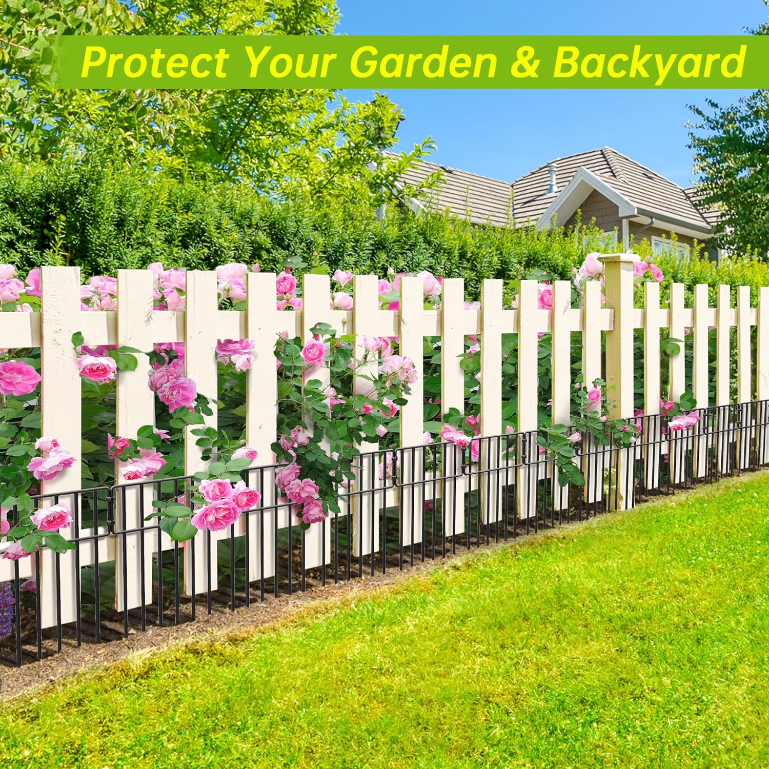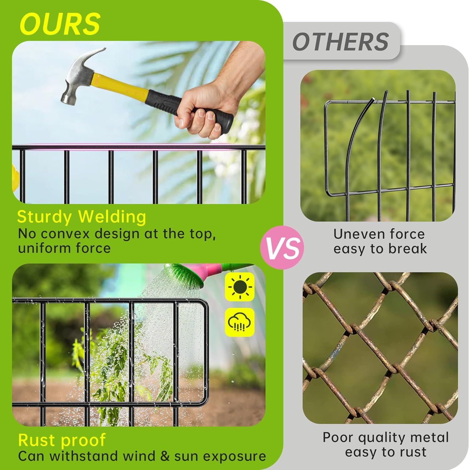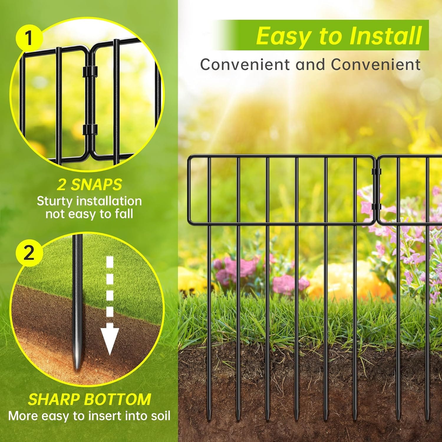 - 【Decorative Garden Fence】These metal fence just need a hammer. This dog barrier fence has sturdy welding and is not easy to break when installed, its bottom is sharp to be easily inserted into the soil, whether it is dry or wet. (Before installation, please select the location of the soil without rocky. If hard ground, you can water the soil to wet the soil before installation)