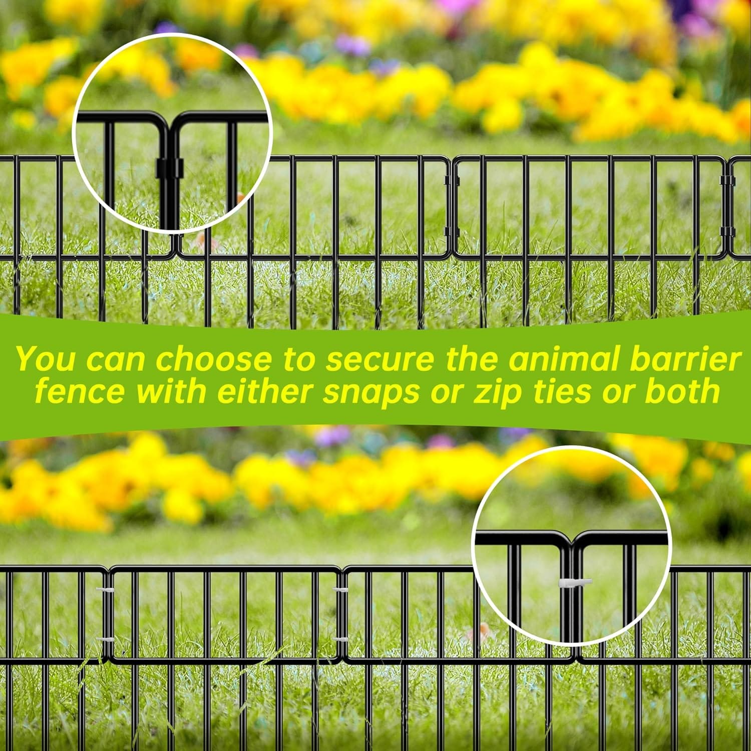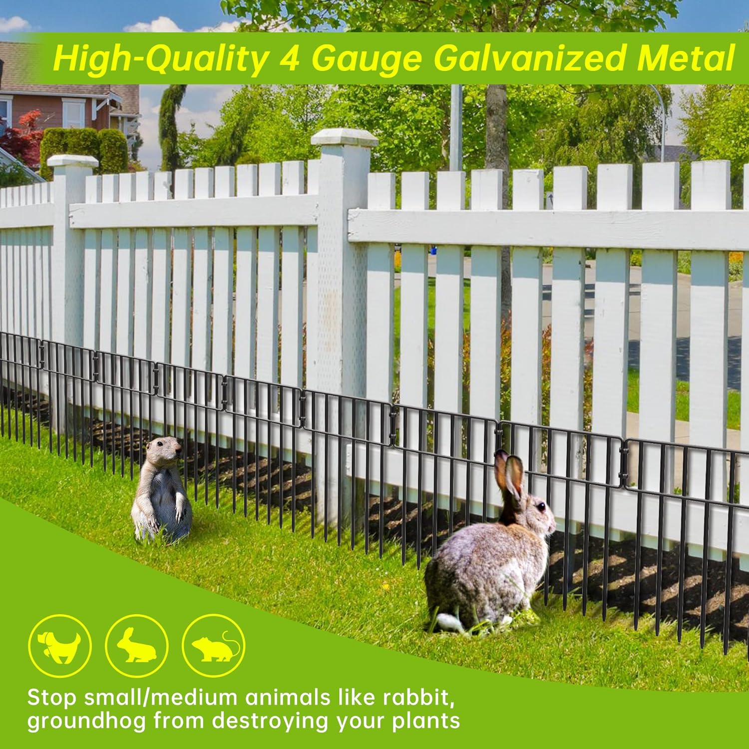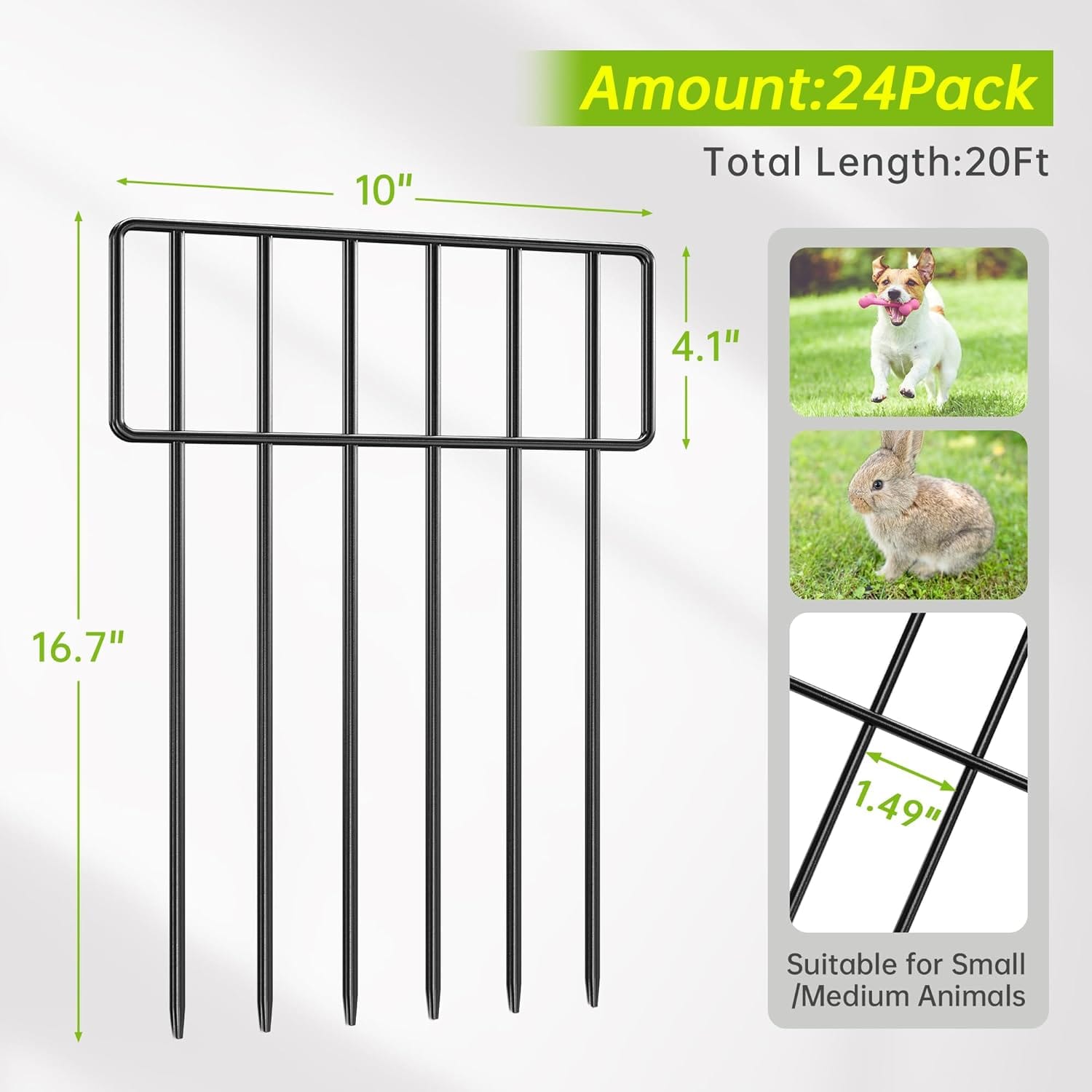 - 【Decorative Garden Fence】These metal fence just need a hammer. This dog barrier fence has sturdy welding and is not easy to break when installed, its bottom is sharp to be easily inserted into the soil, whether it is dry or wet. (Before installation, please select the location of the soil without rocky. If hard ground, you can water the soil to wet the soil before installation)