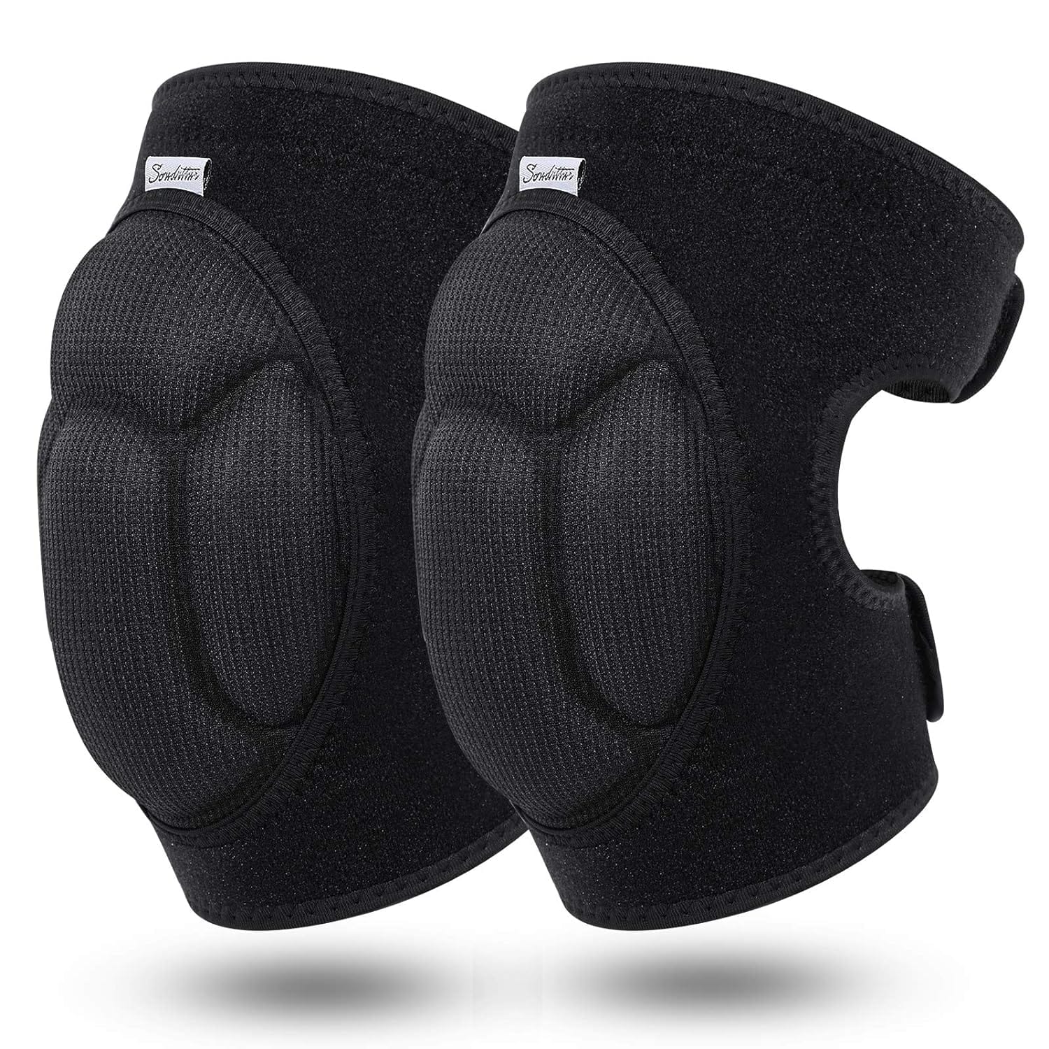 Soudittur Adult Knee Pads for Gardening, Anti-Slip Collision Avoidance Kneepads with Thick EVA Foam, for House Cleaning, Construction Work, Volleyball, Football Dance Knee Sleeve, 1 Pair (Black)