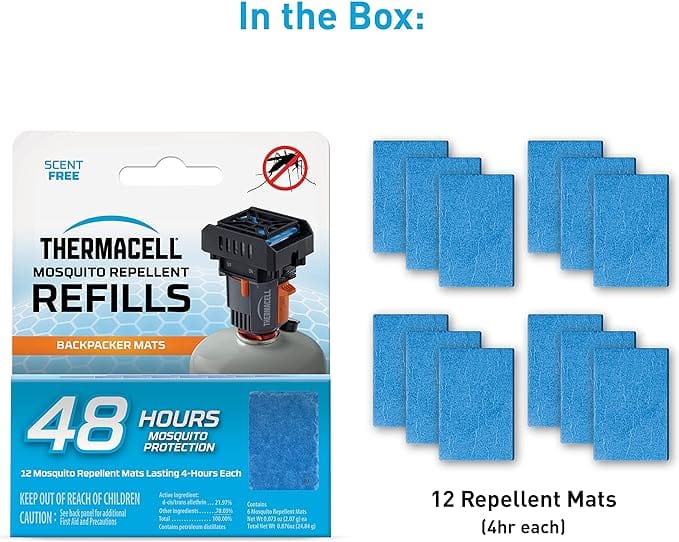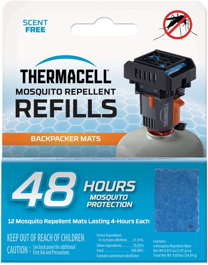 - EFFECTIVE MOSQUITO REPELLENT FORMULA: Thermacell Mosquito Repellent creates a 15-foot zone of protection against mosquitoes. This 48-hour mat-only refill pack is for use in the Thermacell Backpacker Mosquito Repeller only.