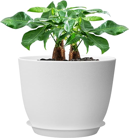 - WOUSIWER Plant Pots 10/9/8 inch, Set of 3 Modern Decorative Plastic Planters with Drainage Holes and Saucers for House Plants Indoor Flowers Plants, WhiteAmazon’sChoice