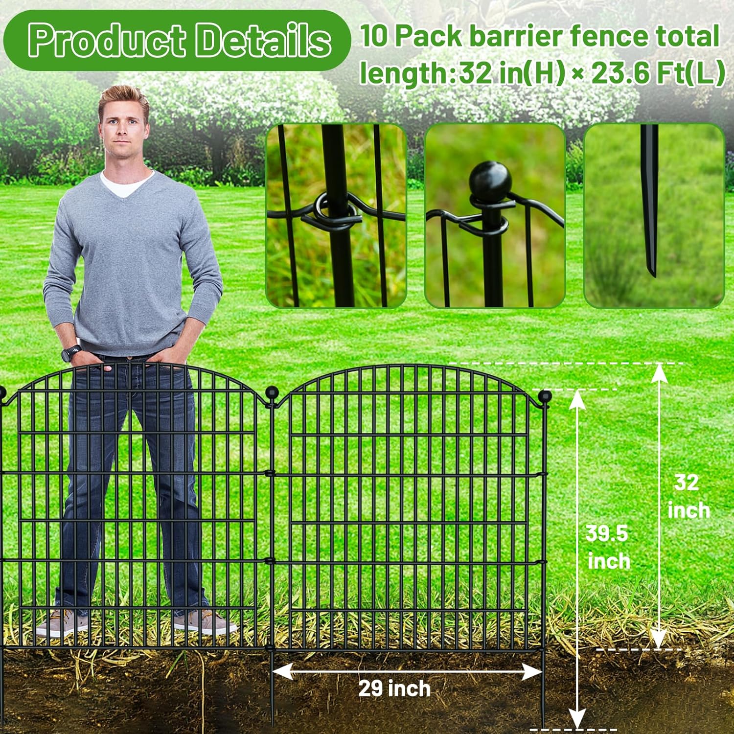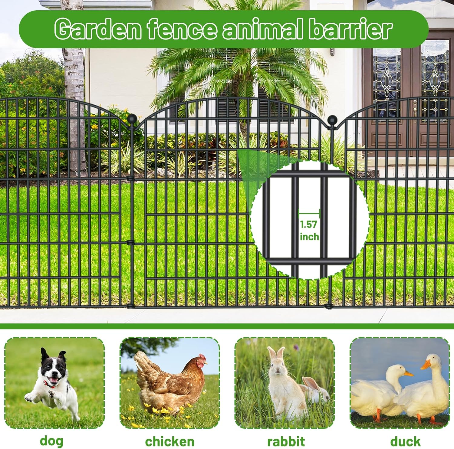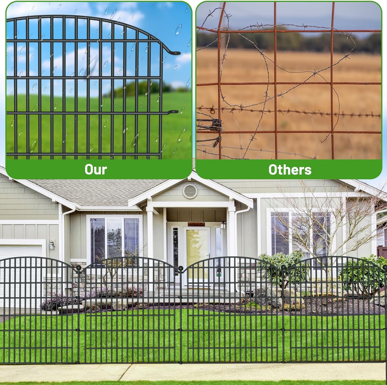 - Diseño clásico para cualquier jardín: la valla de metal para jardín cuenta con un diseño de arco atemporal que complementará maravillosamente cualquier estilo de jardín o patio. El elegante acabado de metal negro añade un toque moderno, mientras que los piquetes de lanza aportan un encanto elegante. Utilice esta valla para definir los bordes del jardín, crear un área de juego segura o mantener a sus mascotas contenidas de una manera elegante y práctica.
