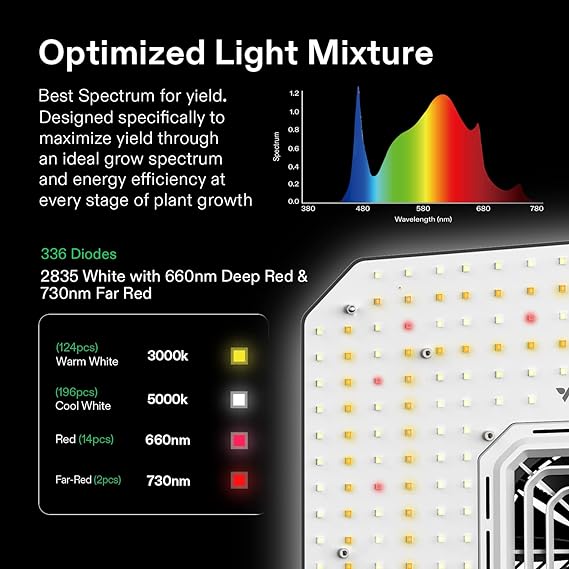 - 2-in-1 Grow Light with Circulation Fan: This is the first full-spectrum LED grow light with a fully integrated circulatory fan; The fan increases airflow into the canopy, it’s programmable