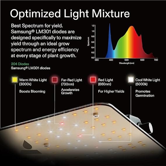 - Lower Costs & High Efficiency Light: VS1000 LED grow lights use the latest LED plant light technology, including Samsung LM301 diodes, high-energy efficiency with 2.75 μmol/J; Extremely high output but consumes only 100W of electricity, making it more efficient than traditional HID lamps and other plant lamps on the market