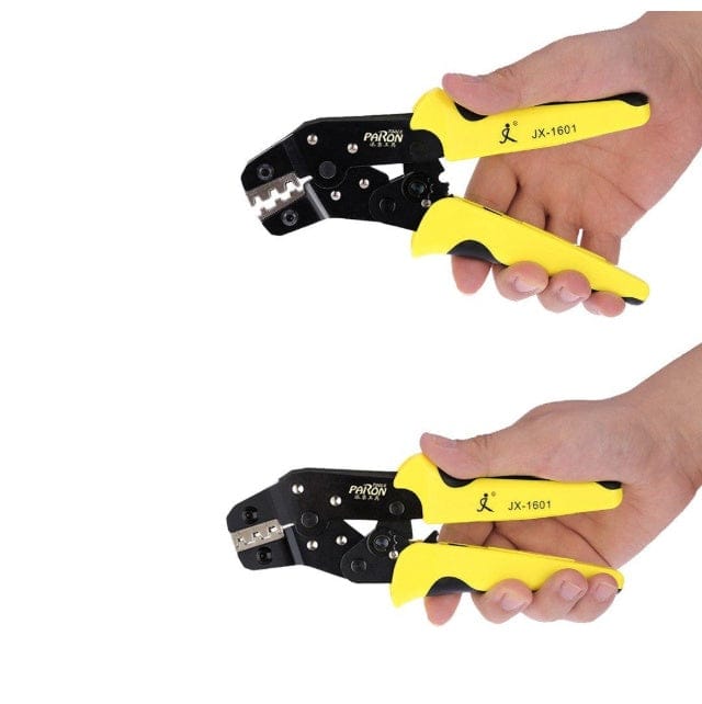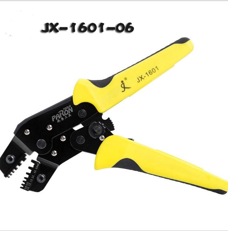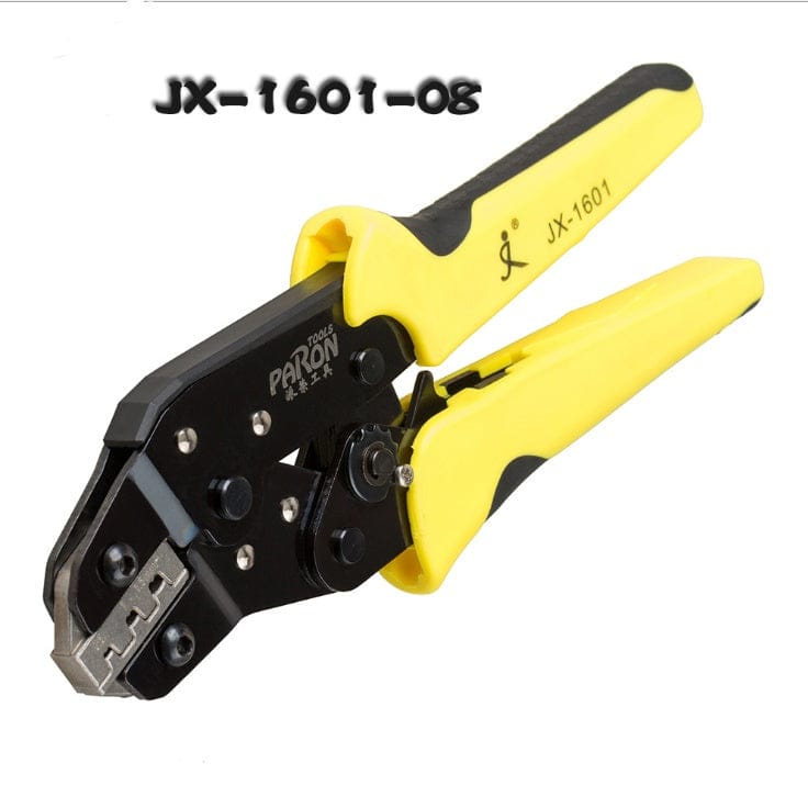 The ratchet type labor-saving crimping pliers (JX-1601) is made of imported manganese steel, which has high durability, long service life, easy and labor-saving operation, and the die-clamping die is made of imported alloy steel with high precision. The crimping is more perfect, the terminal is not wasted, the tong body is heat treated and processed by the self-developed process to make the surface bright and metallic, and the clamp head die can be replaced with other specifications to achieve a multi-purpose effect. A full range of high-end hand tools, handle design and texture, and the use of high-difficult process to manufacture two-color handles, is a permanent tool for the production of electrical, maintenance and electrical companies.