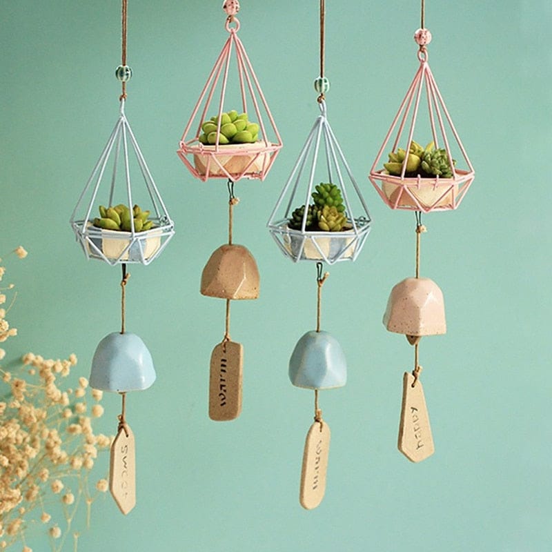The soft sound of wind chimes echoes through your house as a slight breeze enters the window. These wrought iron wind chimes double as a small succulent pot along with a mystical soothing wind chyme. In adorable pastel colours, introduce tranquility into our home or patio and remember to take a moment to admire the beauty around us.