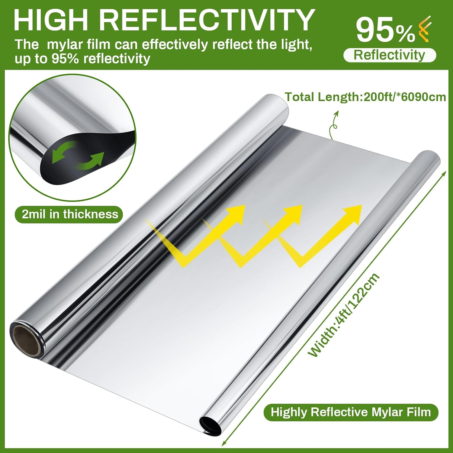 - Versatile Applications: the reflective film is ideal for a myriad of applications, thanks to its size, material, and ease of cleaning, you can use it in a range of areas from art and craft projects to horticultural use, such as warm house, greenhouse, grow tent, wrapping, and house decorations